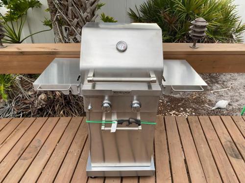 Venice villa with heated pool, lanai, near beach oferece comodidades para churrascos. Depois de um dia a praticar caminhadas, mergulho com snorkel ou ciclismo, os hóspedes podem relaxar no jardim ou no salão partilhado.