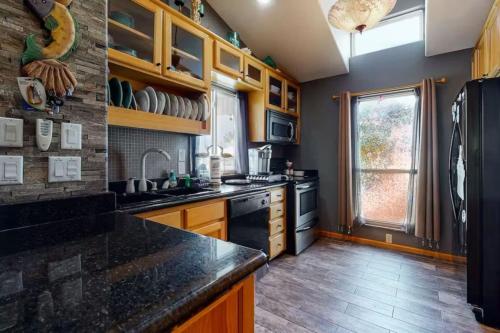 Esta casa de férias com um pátio e vista do mar apresenta 3 quartos, uma sala de estar, uma televisão, uma cozinha equipada com frigorífico e máquina de lavar louça, e 2 casas de banho com banheira de hidromassagem. Toalhas e roupa de cama são providenciadas nesta casa de férias.