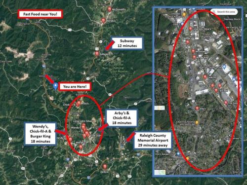O Aeroporto Memorial de Raleigh County fica a 28 km da propriedade.