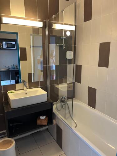 Este apartamento com ar condicionado tem 1 quarto, uma sala de estar, uma kitchenette totalmente equipada com frigorífico e máquina de café, e 1 casa de banho com banheira e um secador de cabelo. Toalhas e roupa de cama são providenciadas neste apartamento.