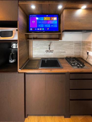 No alojamento, os quartos estão equipados com uma área de estar, televisão de ecrã plano com canais por satélite, cozinha, área de refeições e uma casa de banho privativa com produtos de higiene pessoal gratuitos, chuveiro e um secador de cabelo. No alojamento, os quartos estão equipados com roupa de cama e toalhas.