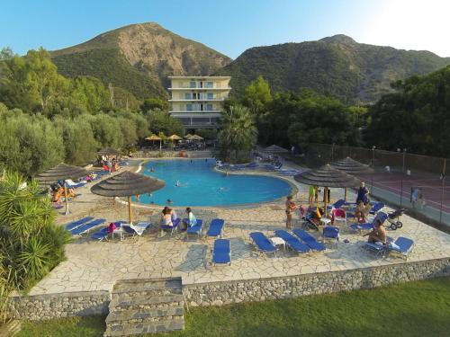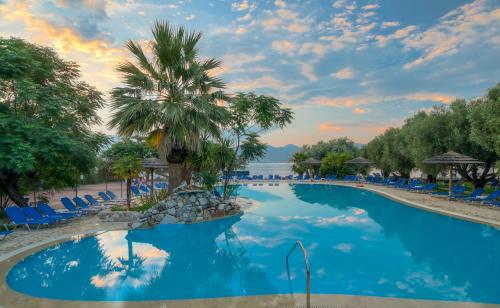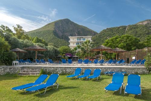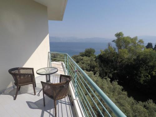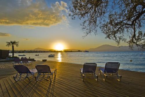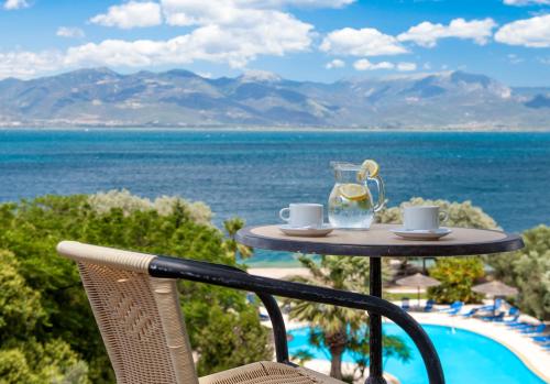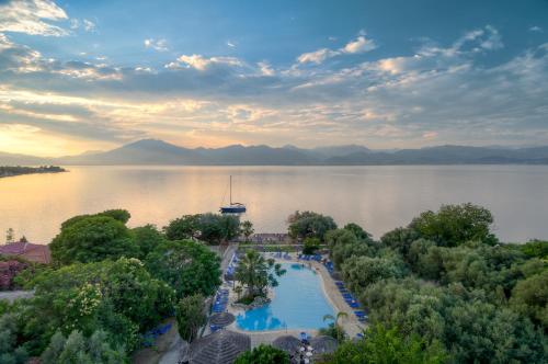 Ideal para relaxamento e revitalização, o Blue Bay está situado entre oliveiras e vimes, com uma vista espectacular da Grécia Continental. Uma lufada da vida cosmopolita de Patras, perto do histórico Kalavryta, bem como dos locais arqueológicos mais importantes, tais como Delphi, Olympia, Epidauro e Micenas. A base perfeita para excursões à Grécia Clássica.
