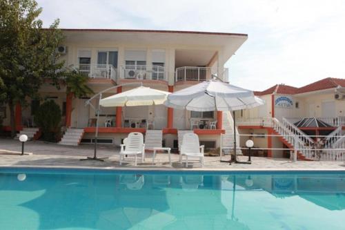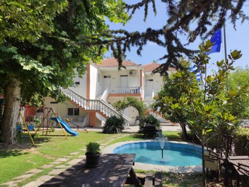 Estia localiza-se a 49 km de Museu da Seda e dispõe de uma piscina exterior sazonal, um jardim e acomodações com ar condicionado, terraço e acesso Wi-Fi gratuito.