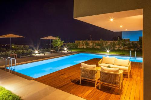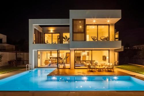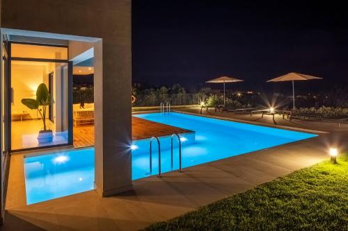 Apresentando uma piscina, um centro de fitness, um jardim e vista da piscina, pirgos-villas, Avra & Ostria villa, Heated pool, amazing sea view situa-se em Máleme e dispõe de acomodações com acesso Wi-Fi gratuito.