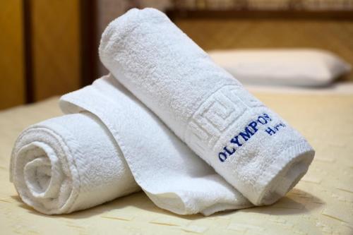 Equipados com papel de parede decorativo, todos os quartos do Olympos incluem uma televisão de ecrã plano por satélite, cofre e mini-bar. A casa de banho privativa inclui um secador de cabelo e chinelos.