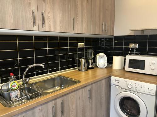 Este apartamento com ar condicionado tem 1 quarto, uma sala de estar, uma cozinha totalmente equipada com frigorífico e máquina de café, e 1 casa de banho com chuveiro. Toalhas e roupa de cama são providenciadas neste apartamento.