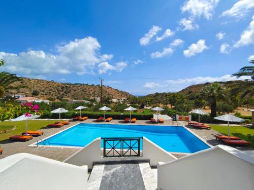 Alex encontra-se em Cárpatos, a menos de 1 km de Afoti Beach, e apresenta acomodações com uma piscina exterior sazonal, estacionamento privado gratuito, um jardim e um salão partilhado. Todas as acomodações neste hotel de 2 estrelas têm vistas da montanha, um terraço e um bar. Este alojamento não fumador localiza-se a 2,8 km de Vrontis Beach.