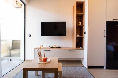 Este apartamento com 1 quarto dispõe de televisão de ecrã plano, ar condicionado e uma sala de estar.