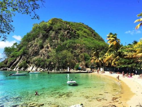 Providenciando vista da montanha em Bouillante, KANALU BEACH APPATEMENT dispõe de acomodações, um jardim, um salão partilhado e um terraço. O acesso Wi-Fi e o estacionamento privado estão disponíveis gratuitamente em KANALU BEACH APPATEMENT.