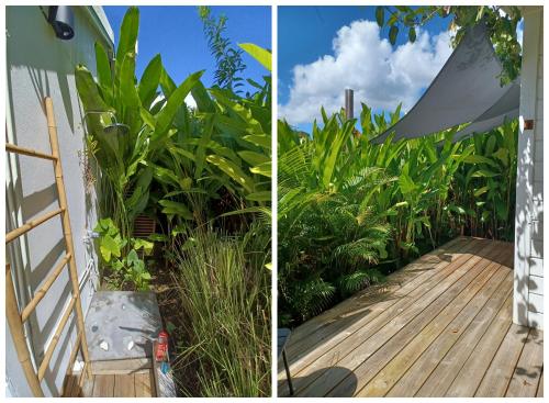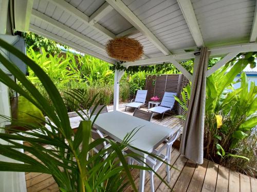 Apresentando uma piscina exterior, um jardim e um terraço, Charmant Bungalow Coco apresenta acomodações em Sainte-Anne com acesso Wi-Fi gratuito e vista do jardim.