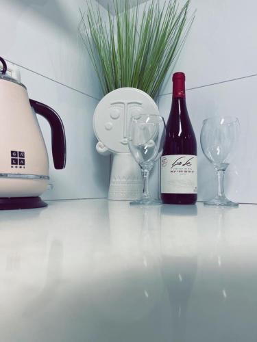 Este apartamento com ar condicionado tem 1 quarto, uma sala de estar, uma cozinha totalmente equipada com frigorífico e chaleira, e 1 casa de banho com chuveiro e produtos de higiene pessoal gratuitos. Toalhas e roupa de cama são providenciadas neste apartamento.