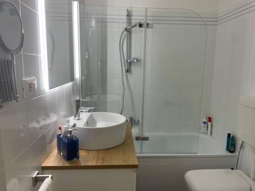 Este apartamento tem 2 quartos, uma sala de estar, uma cozinha totalmente equipada com frigorífico e máquina de café, e 1 casa de banho com bidé e chuveiro. Toalhas e roupa de cama são providenciadas neste apartamento.