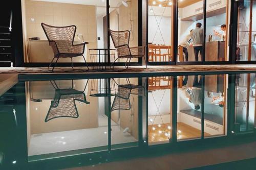 一日一組限定の貸切宿 民藝と憩う宿 -遊心館- possui uma banheira de hidromassagem.