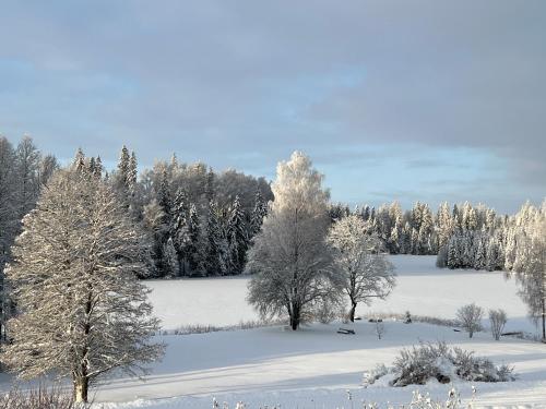 Em Kavari, a 38 km de Līgatne Nature Trails, Pie Ezerrozēm apresenta acomodações com uma área de praia privada, acesso Wi-Fi gratuito, uma cozinha partilhada e um salão partilhado. Apresentando estacionamento privado gratuito, esta casa de férias está numa área onde os hóspedes podem desfrutar de atividades como caminhadas, esqui e pesca.