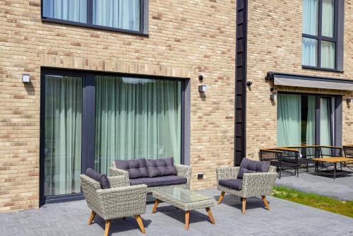 A cerca de 11 km de Palanga Church of the Assumption e 12 km de Palanga Sculpture Park, Ferio Vila su pirtimis ir baseinu fornece acesso Wi-Fi gratuito e um terraço. Situado a 18 minutos a pé de Sventoji Nudist Beach, o alojamento apresenta uma piscina exterior sazonal e estacionamento privado gratuito.
