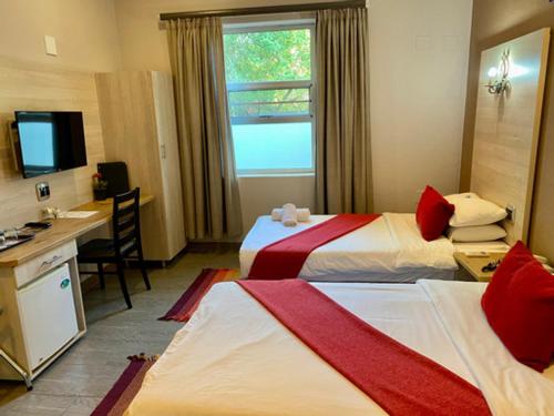 A 5 minutos a pé de Tsumeb Museum, Minen Hotel dispõe de acomodações de 2 estrelas em Tsumeb e apresenta um jardim, um restaurante e um bar. Apresentando serviço de quartos, este alojamento também dispõe de casino. O alojamento fornece receção aberta 24 horas, transfers do aeroporto, um clube infantil e acesso Wi-Fi gratuito em toda a propriedade.
