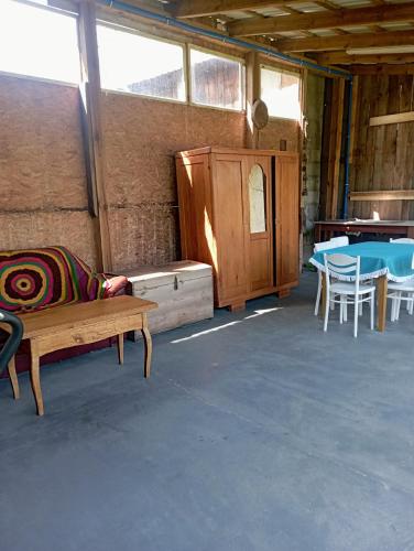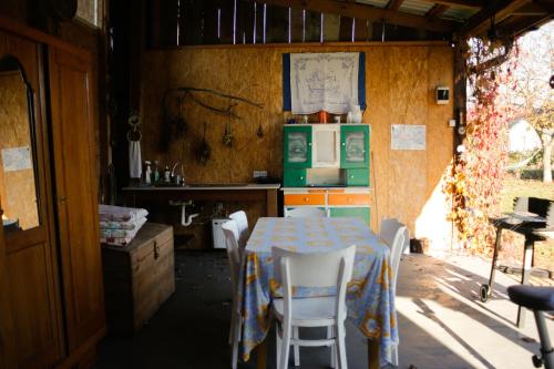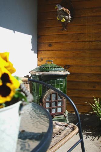 Este alojamento de turismo rural com um terraço e vista do jardim tem 1 quarto, uma sala de estar, uma televisão de ecrã plano, uma kitchenette equipada com frigorífico e micro-ondas, e 2 casas de banho com chuveiro. Toalhas e roupa de cama são providenciadas neste alojamento de turismo rural.