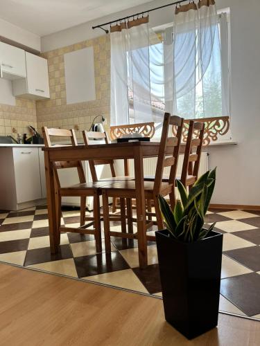 Apresentando vista do jardim, APARTMENT ON THE ROAD S-61 dispõe de acomodações com um jardim, um terraço e comodidades para churrascos, a cerca de 9,3 km de Lithuanian Open Air in Punsk. O alojamento com ar condicionado está a 31 km de Lago Hancza, e os hóspedes beneficiam de estacionamento privado disponível no local e acesso Wi-Fi gratuito.