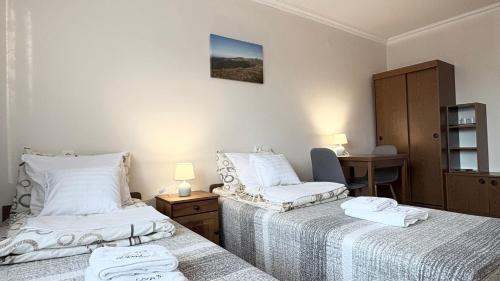 Os quartos apresentam uma decoração clássica com cores quentes. Cada um inclui uma televisão e uma casa de banho privativa com um chuveiro.