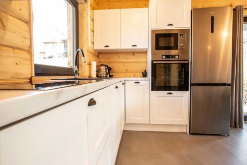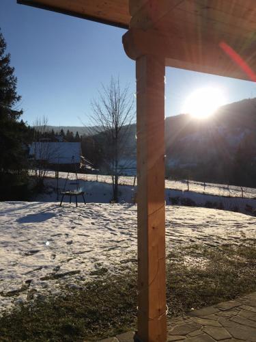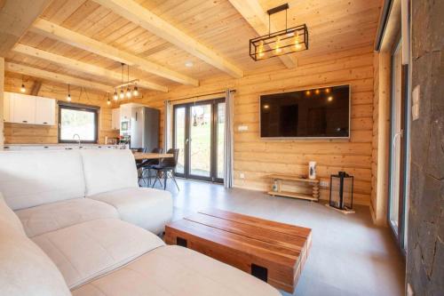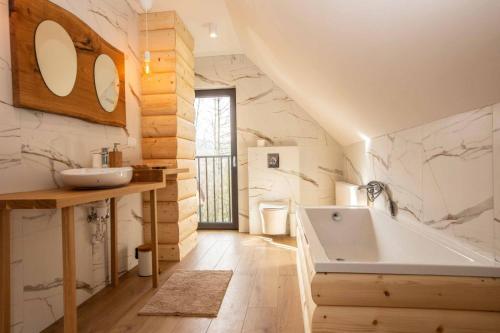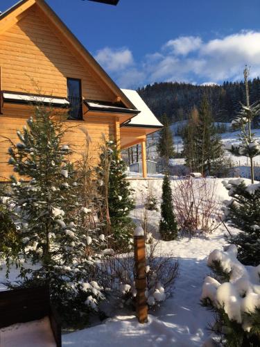 Apresentando vista do jardim, Gorczański dom z bali w górach dispõe de acomodações com um terraço e varanda, a cerca de 42 km de Banhos Termais Bania. O alojamento fornece estacionamento privado gratuito e uma cozinha partilhada.
