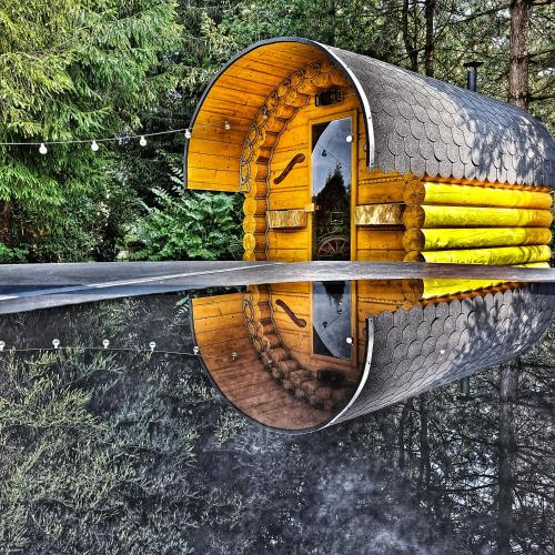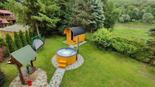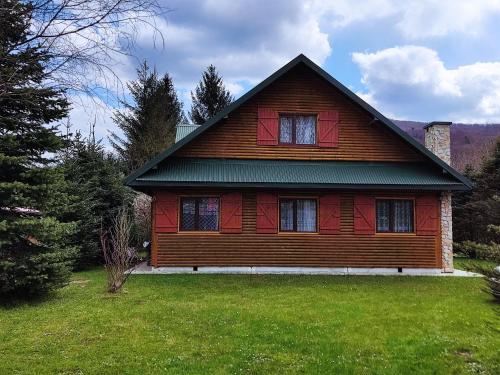 Apresentando vista do rio, Ranczo Bieszczady duży Domek z Jacuzzi i Sauną fornece acomodações com varanda e máquina de café, a cerca de 12 km de Museu Skansen Sanok. O alojamento apresenta uma piscina privada, jardim, comodidades para churrascos, acesso Wi-Fi gratuito e estacionamento privado gratuito.