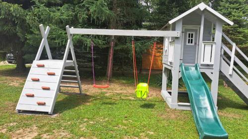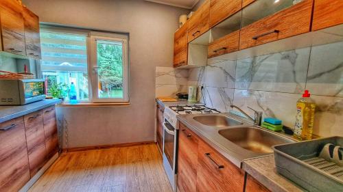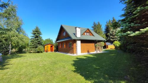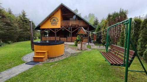 Ranczo Bieszczady duży Domek z Jacuzzi i Sauną oferece uma variedade de comodidades de bem-estar, incluindo sauna e banheira de hidromassagem. Este alojamento possui salão partilhado e os hóspedes podem praticar caminhadas e ciclismo nas proximidades.