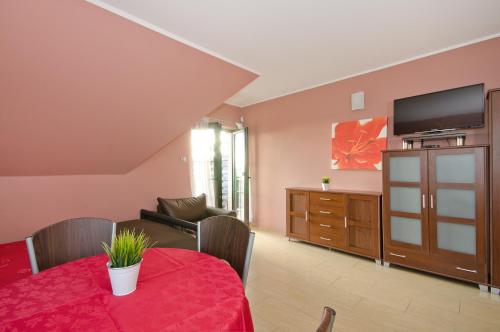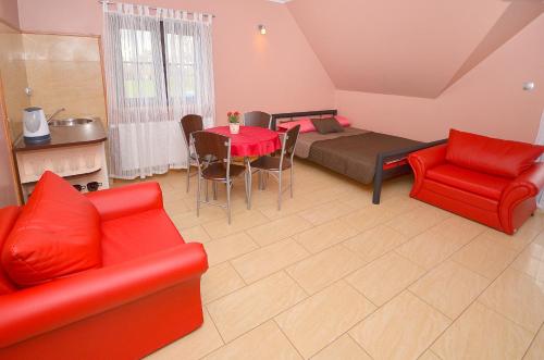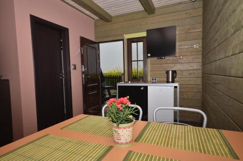 Apresentando vista do jardim em Darłowo, Pod Strzechą apresenta acomodações, bicicletas gratuitas, um jardim, um terraço, um bar e comodidades para churrascos. O acesso Wi-Fi e o estacionamento privado estão disponíveis gratuitamente em Pod Strzechą.