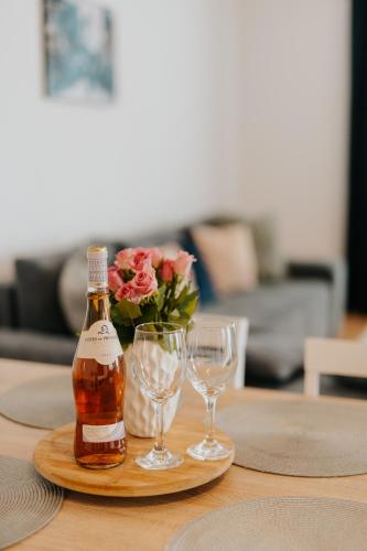 Este apartamento apresenta 2 quartos, cozinha com um frigorífico e uma máquina de lavar louça, uma televisão de ecrã plano, uma área de estar e 2 casas de banho dispondo de chuveiro. Toalhas e roupa de cama são providenciadas neste apartamento.