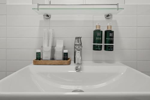 Este apartamento com ar condicionado tem 2 quartos, uma sala de estar, uma cozinha totalmente equipada com frigorífico e máquina de café, e 2 casas de banho com chuveiro e produtos de higiene pessoal gratuitos. Toalhas e roupa de cama são providenciadas neste apartamento.