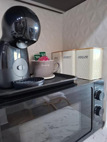 Este apartamento com um terraço e vista da montanha apresenta 1 quarto, uma sala de estar, uma televisão de ecrã plano, uma kitchenette equipada com frigorífico e micro-ondas, e 1 casa de banho com chuveiro. Toalhas e roupa de cama são providenciadas neste apartamento.