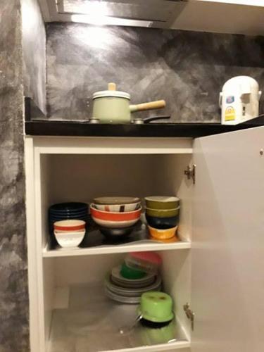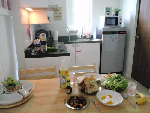 O alojamento está equipado ar condicionado e possui uma cozinha com área de refeições, uma televisão de ecrã plano e uma casa de banho partilhada com chuveiro, produtos de higiene pessoal gratuitos e um secador de cabelo. Um frigorífico, um micro-ondas e placa de fogão estão disponíveis, assim como uma chaleira.