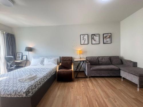 Este apartamento dispõe de 1 quarto, uma cozinha com frigorífico e micro-ondas, e 1 casa de banho com chuveiro, um secador de cabelo e máquina de lavar roupa. Uma televisão está disponível.