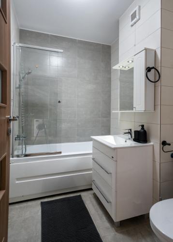 The apartment features 1 bedroom, a flat-screen TV with cable channels, a fully equipped kitchen with an oven and a microwave, a washing machine, and 1 bathroom with a bath. Towels and bed linen are featured in the apartment.