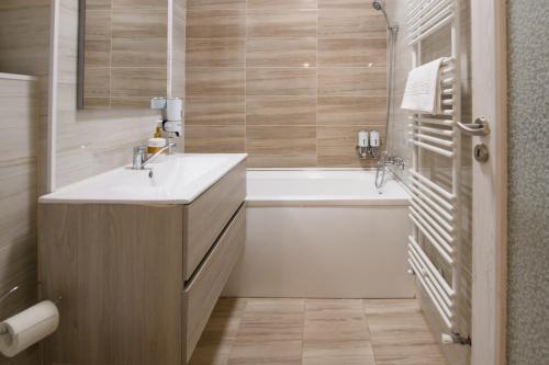 The apartment provides guests with a balcony, inner courtyard views, a seating area, satellite flat-screen TV, a fully equipped kitchen with an oven and a fridge, and a private bathroom with shower and slippers. A stovetop is also available, as well as a coffee machine and a kettle. At the apartment complex, each unit has bed linen and towels.