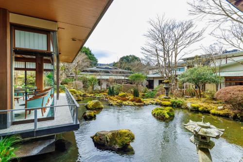 Surrounded by bamboo trees and hills, Yoshimatsu is a traditional Sukiya-style Ryokan (inn) with beautiful outdoor hot spring baths. Overlooking Mt. Fuji and Lake Ashi, it provides a free shuttle from Hakone Machi Bus Station.