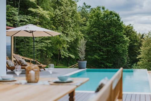 Гости Das Hundert am Eichberg, Südsteiermark могут посетить сауну и гидромассажную ванну. На территории есть открытый бассейн и терраса. Гости могут прогуляться в округе.