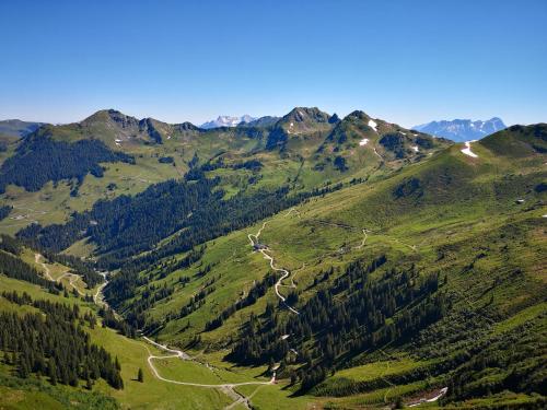 Chalet Garni Hotel Zimmermann enjoys a very quiet location next to the Kitzbühel-Schwarzsee-Reith Golf Course in Reith bei Kitzbühel, offering panoramic views of the Kitzbühel Alps and the Wilder Kaiser mountain.