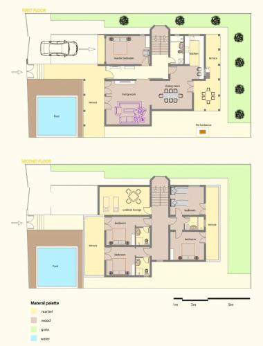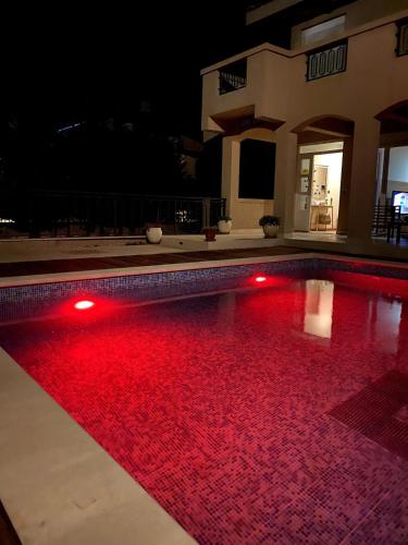The spacious guest house is fitted with 5 bedrooms, 4 bathrooms, bed linen, towels, a flat-screen TV with satellite channels, a dining area, a fully equipped kitchen, and a balcony with pool views. The air-conditioned unit at the property features a bath and a dressing room. This guest house is non-smoking and soundproof.