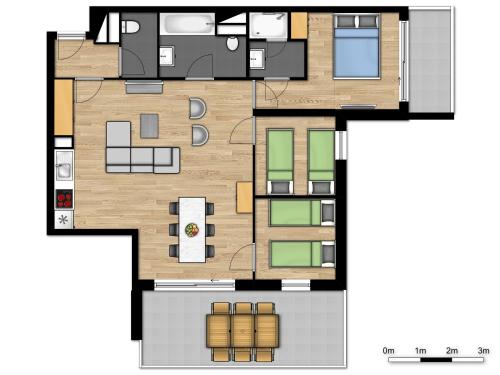 В этих апартаментах есть кухня с холодильником и посудомоечной машиной, а также следующее количество спален: 3. В распоряжении гостей телевизор с кабельными каналами, установлен бесплатный Wi-Fi. Гостям этих апартаментов предоставляются полотенца и постельное белье.