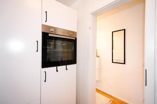 В распоряжении гостей мини-кухня с холодильником, посудомоечной машиной и духовкой, а также с кофемашиной и чайником.