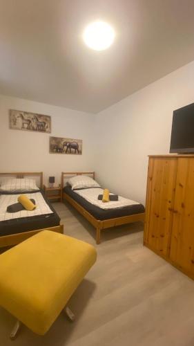 В этих апартаментах имеется несколько спален (2), кухня с холодильником и посудомоечной машиной, а также ванная комната (1) с душем и феном. Гостям этих апартаментов предоставляются полотенца и постельное белье.