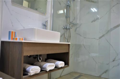 Среди удобств Pagiatakis Suites — телевизор с плоским экраном и собственная ванная комната с бесплатными туалетно-косметическими принадлежностями, феном и душем. Также есть холодильник и кофемашина.