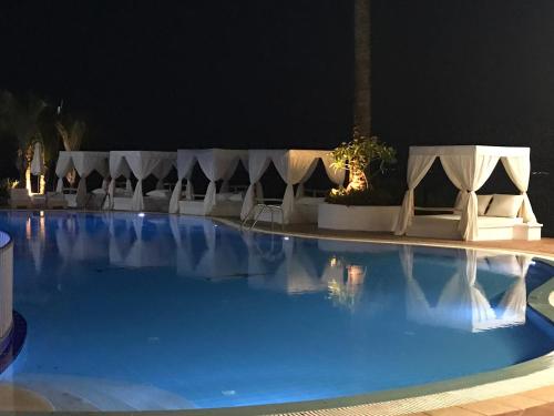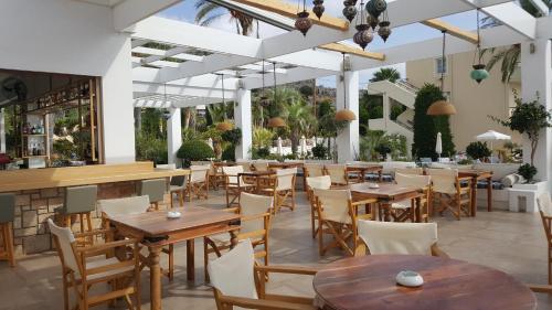 В баре подаются освежающие напитки и коктейли, а также легкие закуски. Ресторан открыт на обед и ужин, ааа с его террасы под открытым небом открывается панорамный вид на море.