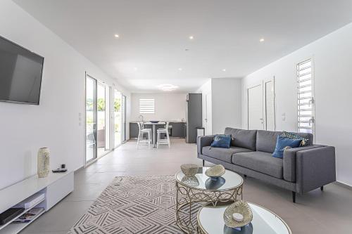 Villa BLUE располагается на расстоянии 2,5 км от такой достопримечательности, как Пляж Резен-Клер. Международный аэропорт Пуэнт-а-Питр находится в 37 км.