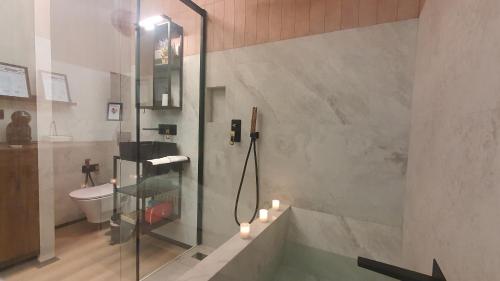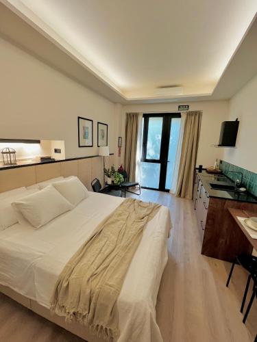 В этих апартаментах с кондиционером имеется телевизор с плоским экраном, полностью укомплектованная кухня с холодильником, гостиная зона и ванная комната (1) с биде, душем и ванной.