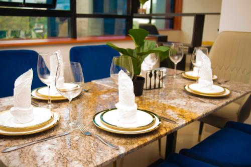 В Residence Hotel Smart douala предлагается завтрак по меню или континентальный завтрак.