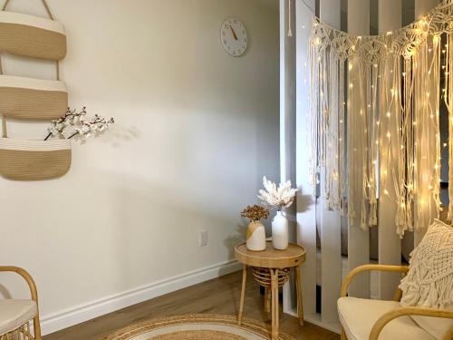 The spacious guest house has 2 bedrooms, a flat-screen TV with streaming services, a fully equipped kitchenette with a dishwasher and a microwave, a washing machine, and 2 bathrooms with a walk-in shower. Guests can enjoy an ambient stay in their soundproof room with tiled floors and a fireplace. This guest house is allergy-free and non-smoking.
