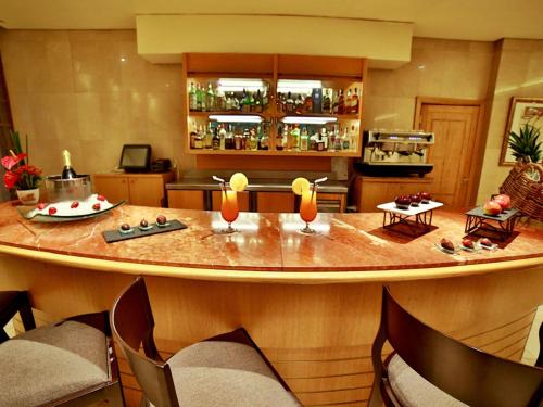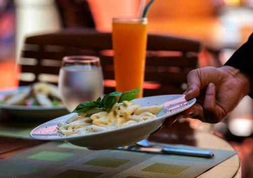 В ресторане подаются блюда интернациональной и ливанской кухни, а в лаундж-баре можно заказать напитки. По утрам сервируется завтрак. В меню бара у бассейна представлены легкие блюда.