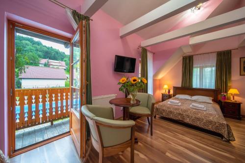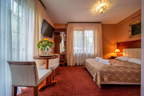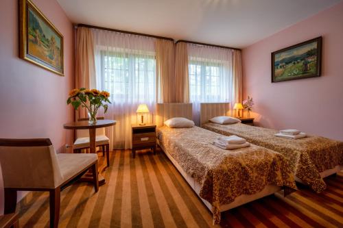 В Hotel Modrzewiówka в номерах есть телевизор с плоским экраном, платяной шкаф и собственная ванная комната, а также предоставляются постельное белье и полотенца. В собственной ванной комнате есть душ и бесплатные туалетно-косметические принадлежности.