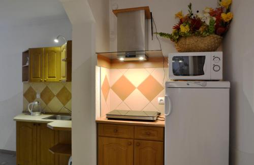 В некоторых единицах размещения обустроена кухня с холодильником, микроволновой печью и плитой.